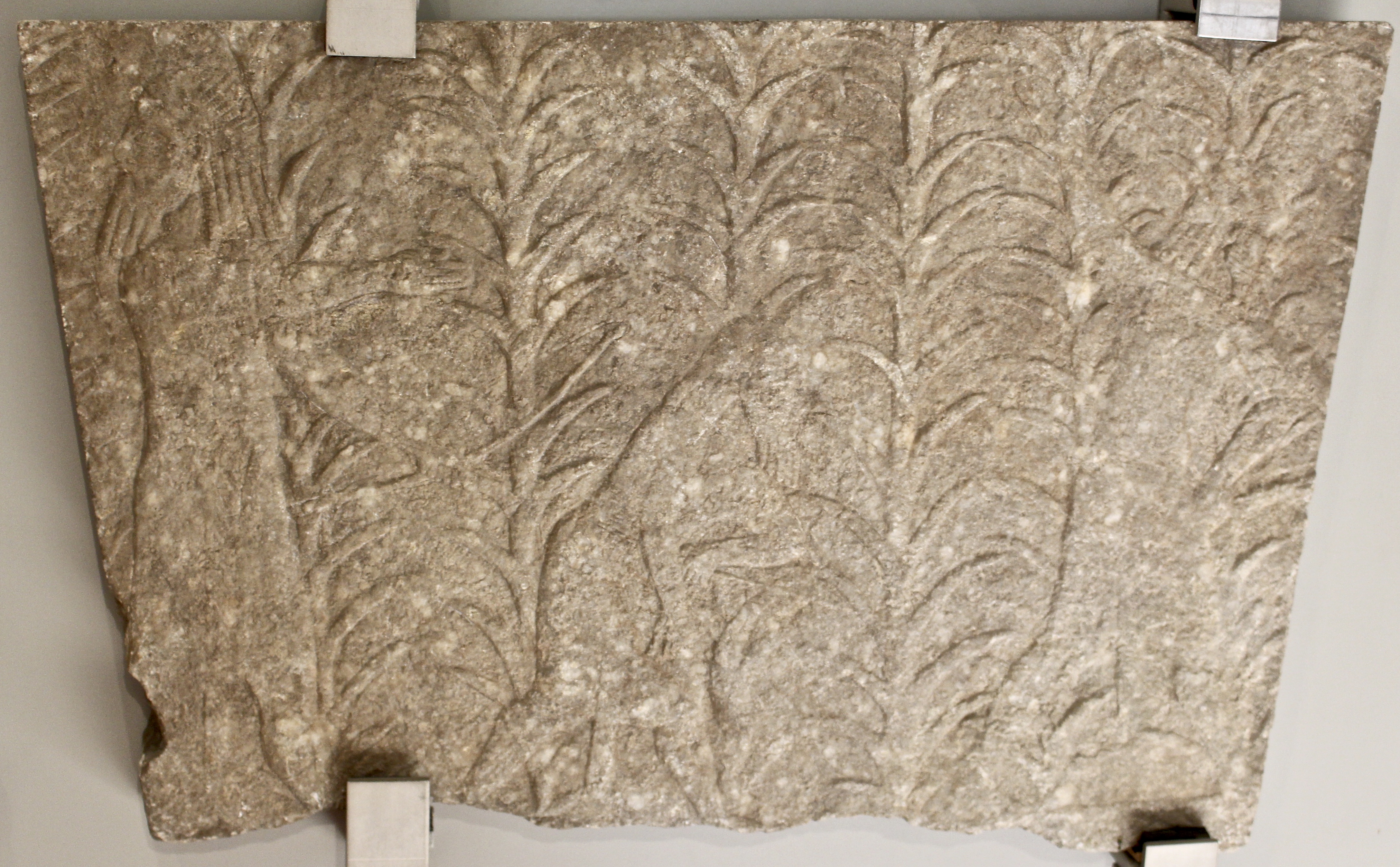 | Fig. 4 Rilievo con fuggitivi babilonesi in un canneto. Calcare, Impero neo-assiro, regno di Assurbanipal (668-627 a.C.), dal Palazzo Nord o Sud-Ovest di Ninive. |